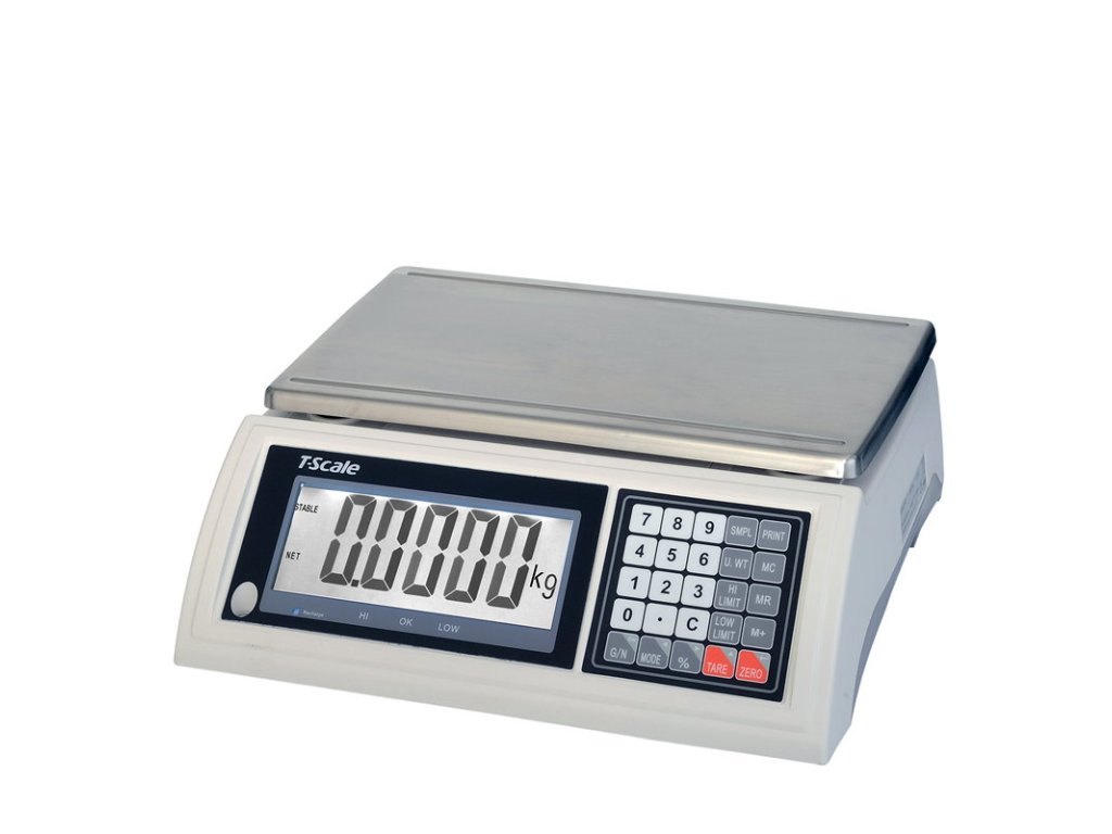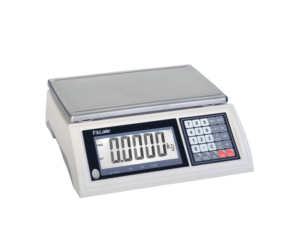 Počítací stolní váha do 3 kg s vysokou rozlišovací schopností 30 000 dílků o rozměru vážní plochy 240x370 mm a přesností vážení 0,1 g. Váhy TScale JW jsou velmi stabilní, spolehlivé a přesné. Používají se jako kontrolní váhy ve skladech nebo při výrobním procesu.