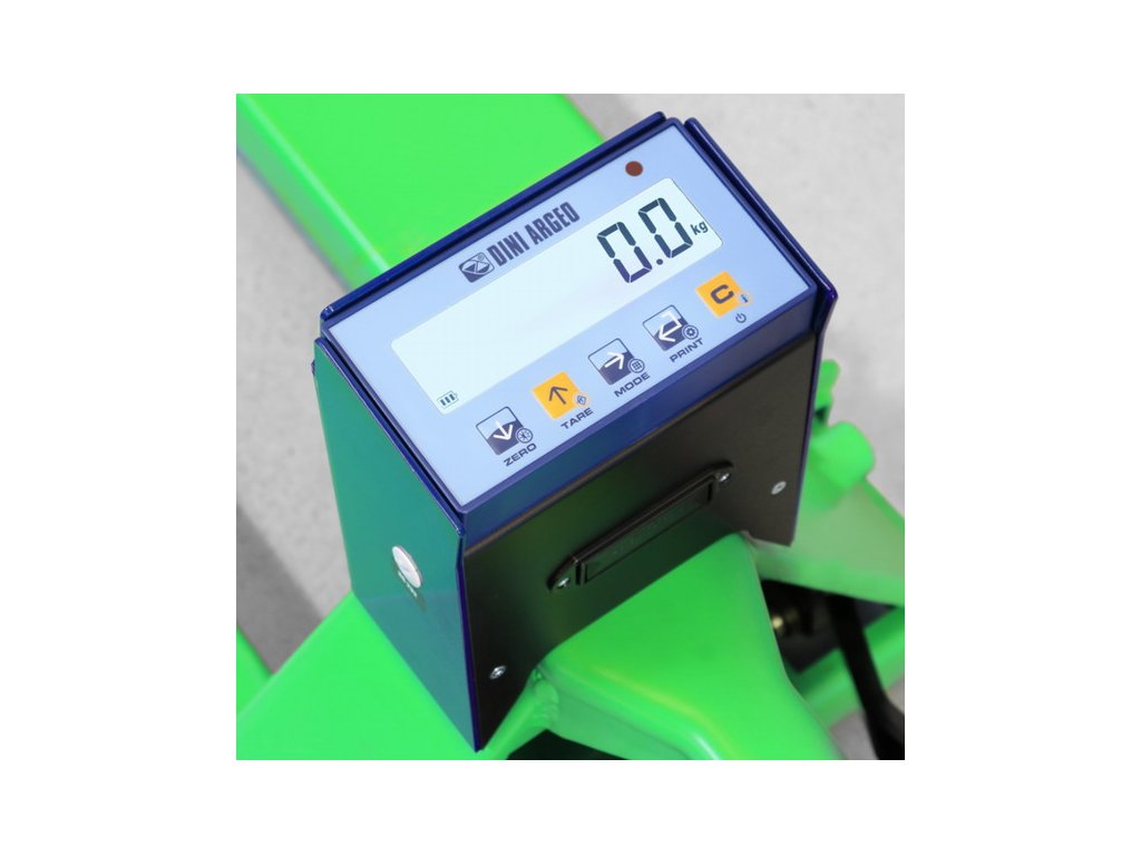 Paletový vozík s váhou od ověřené italské společnosti DINI ARGEO TPWN2 do 1500 kg pro kontrolní vážení v lakovaném provedení. Vážicí paletový vozík se používá především pro kontrolní vážení ve skladech. Robustní prověřená konstrukce zaručuje přesné a bezproblémové vážení. Pogumovaná pojezdová kola zabezpečují tichý a lehký pojezd.