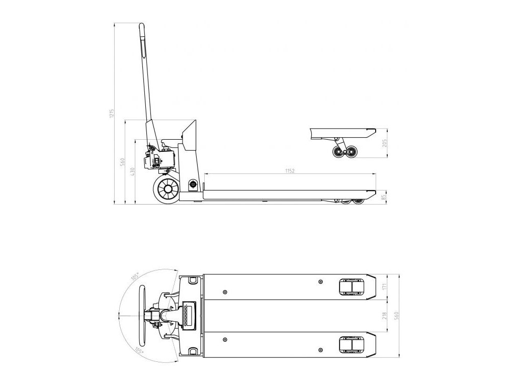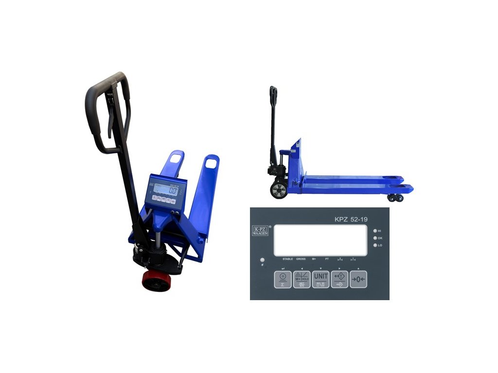 KPZ 71-10, 2500 kg, dílek 500 g, 560mmx1155mm, Vážicí paletový vozík pro sklady, výrobu a expedici v ekonomické variantě