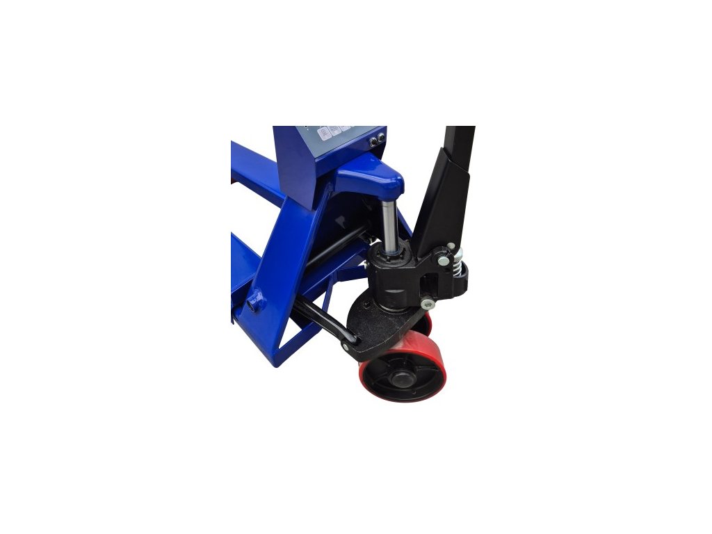 Paletový vozík s váhou KPZ 71-10 do 2500 kg pro neobchodní (technologické) vážení v lakovaném provedení. Vážicí paletový vozík se používá především pro kontrolní vážení ve skladech. Robustní prověřená konstrukce zaručuje přesné a bezproblémové vážení. Polyurethanová pojezdová kola zabezpečují lehký pojezd.
